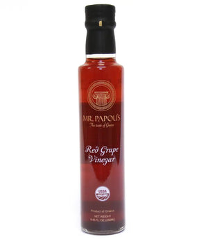 Discover the exquisite taste of Greece with Mr. Papou's Organic Red Wine Vinegar. Immerse yourself in a culinary journey that spans generations, as we present our meticulously crafted, high-quality Greek vinegar.